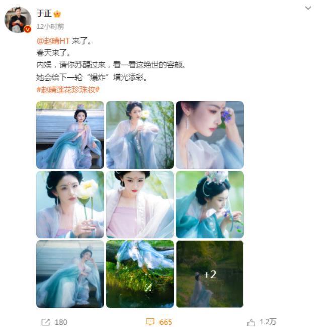 在《墨雨云间》中,赵晴饰演“司徒九月”,虽然也是个配角,但还是非常出彩的。前不久,于正在自己的社交账号为造型打call,希望大家看一看这绝世容颜,并相信赵晴一定会大火,赵晴的演技不错,只是和吴佳怡有些像,她们都缺少一个机会。